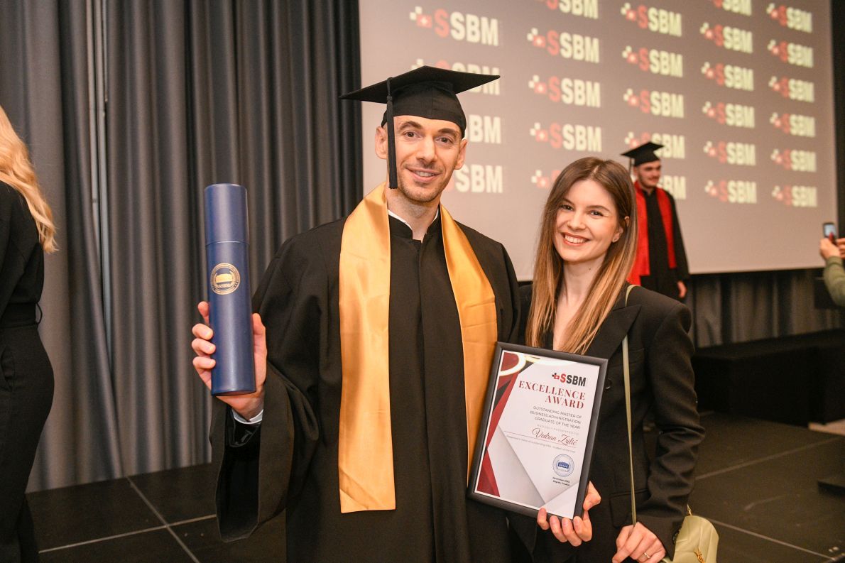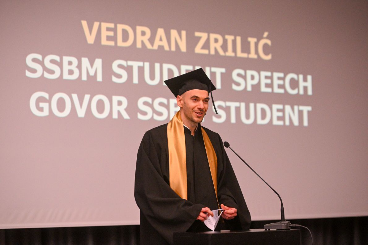 The ceremony began with the traditional Gaudeamus Igitur, followed by an opening address from the host Tina Kolić, and a warm welcome from SSBM Geneva President, Prof. Dr. Luka Leško, who highlighted the accomplishments of the graduating students and the enduring mission of SSBM Geneva to foster global business leaders.