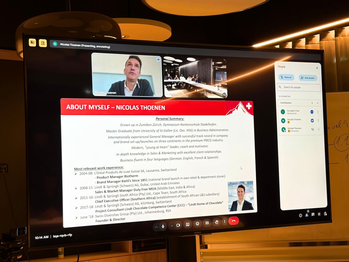 In the Company Project BB2 class, Professor Olesya Messina enriched the learning experience by inviting a guest speaker, Nicolas Thosenen, whose international background and business expertise provided students with valuable real-world insight. During his presentation, he shared his professional journey, global experience, and key lessons learned throughout his career. His profile, showcased on the slides presented in class, offered students a comprehensive overview of his achievements and areas of expertise, inspiring them to think critically about their own professional paths.