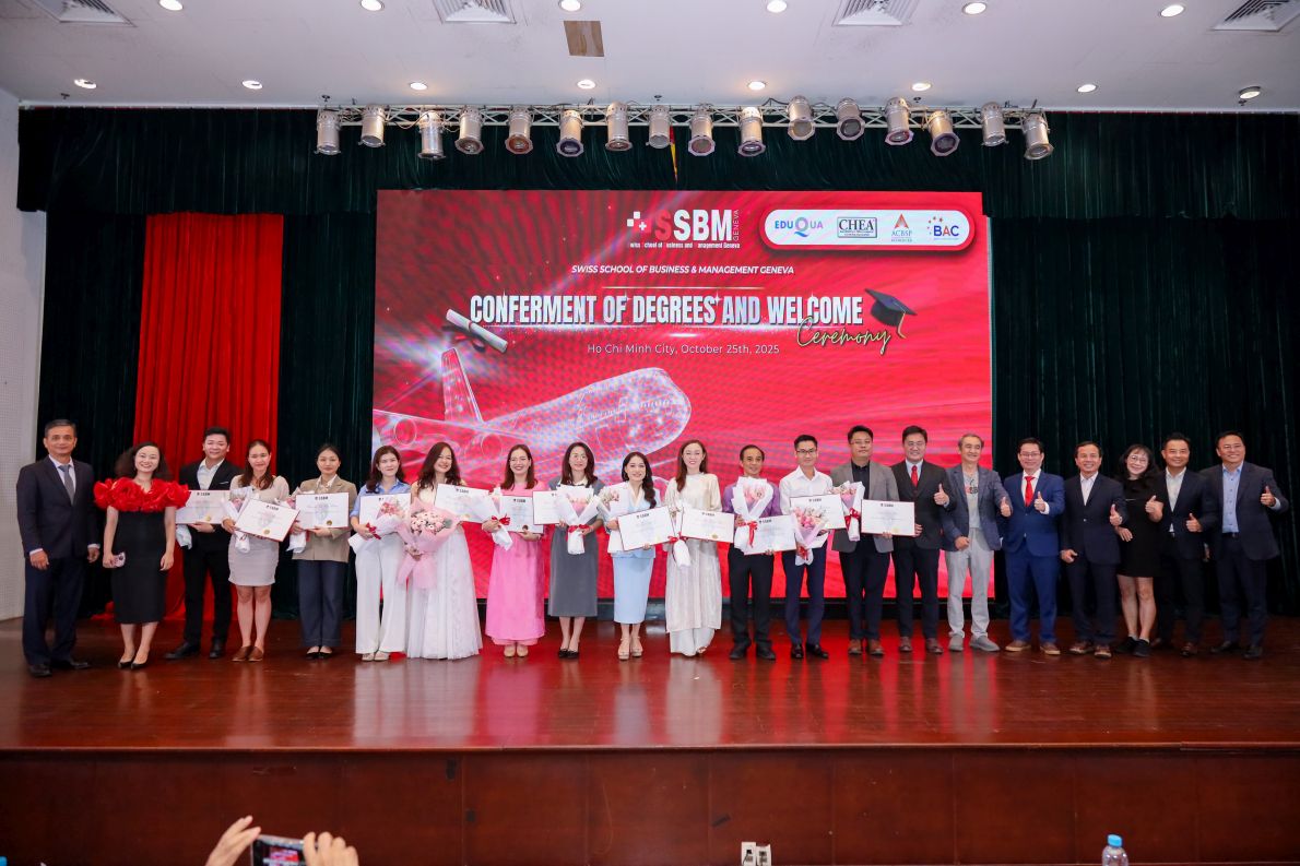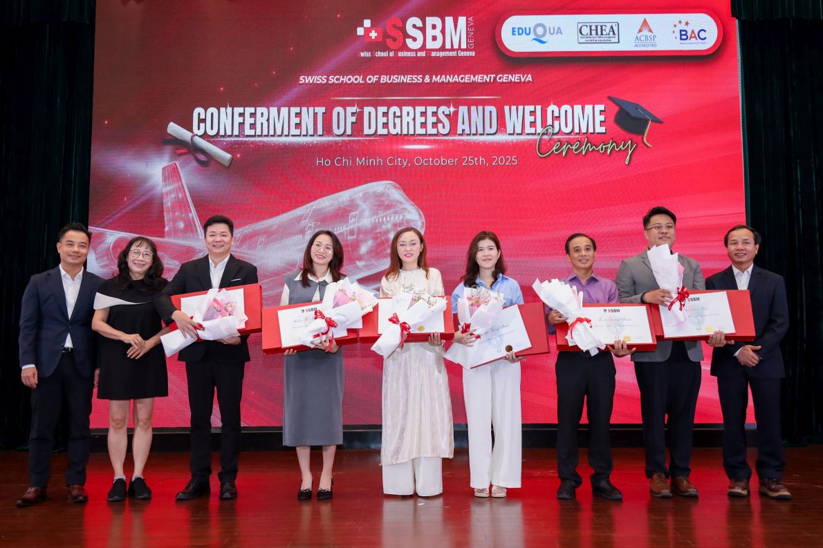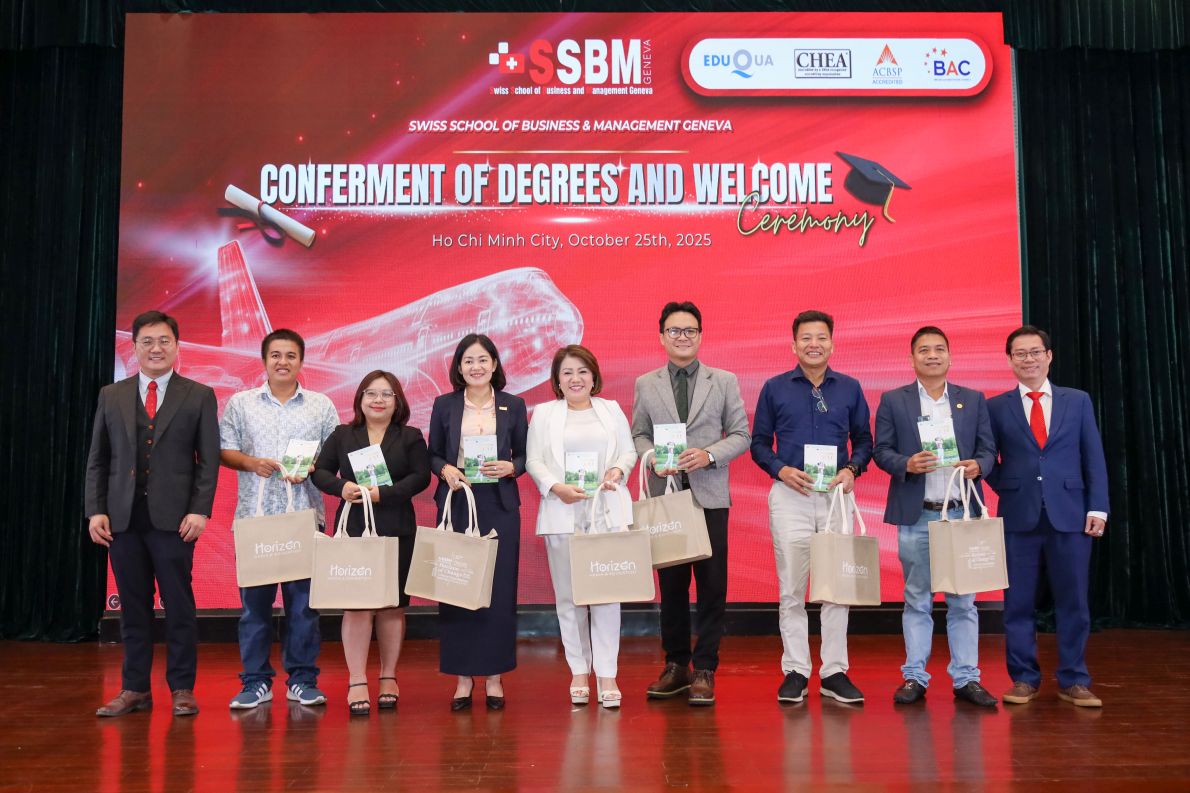 On October 25, 2025, at the Vietnam News Agency Building in Ho Chi Minh City, SSBM Vietnam proudly hosted the Conferment of Degrees & Welcome Ceremony 2025 – a meaningful event marking two important milestones in the academic journey of our learners: the graduation of Global MBA students and the warm welcome to new Global MBA and DBA cohorts.