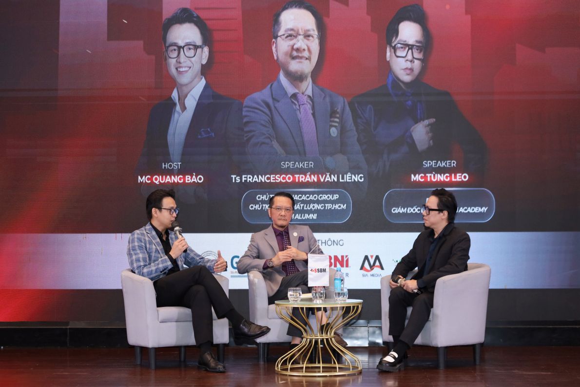 The event brought together entrepreneurs and business leaders seeking new insights on how to adapt and thrive in times of uncertainty. Guided by host-famous MC Quang Bao, and featuring distinguished • Speaker: Dr. Francesco Tran Van Lieng – Chairman of VinaCacao Group, Chairman of the Ho Chi Minh City Quality Association and SSBM Alumni • Speaker: MC Tung Leo – Founder and Training Director of NOI Academy.
